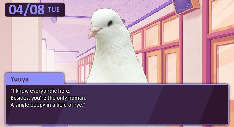 On an alternative version of Earth populated by sentient birds, you play as the only human at the St. PigeoNation’s Institute school for birds who’s looking for love.