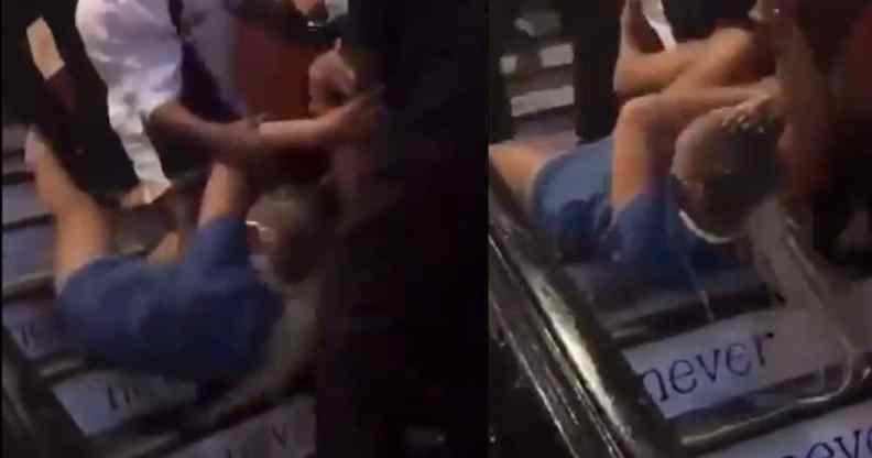 Footage taken at Nellie’s Sports Bar, a popular LGBT+ venue, shows other patrons jumping in and fighting with the security guard as he pulls her head first down the stairs.