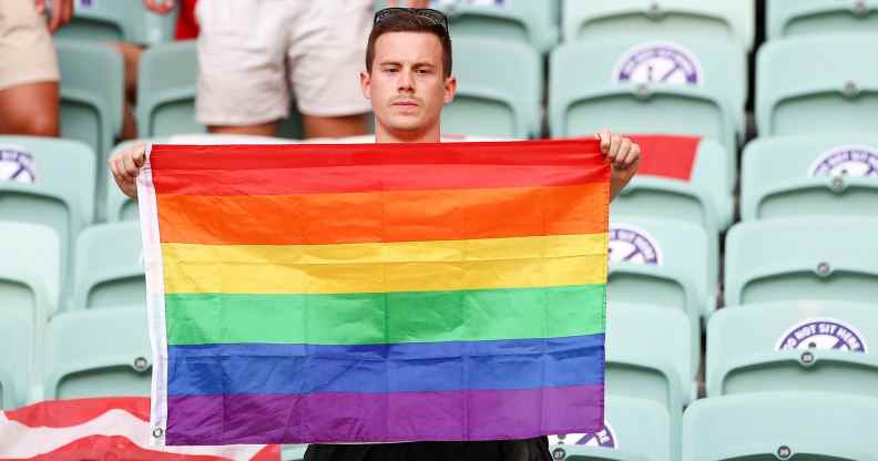 Photographs emerged while the match aired that appeared to show a group of fans holding a rainbow flag before two stadium staffers take it away.