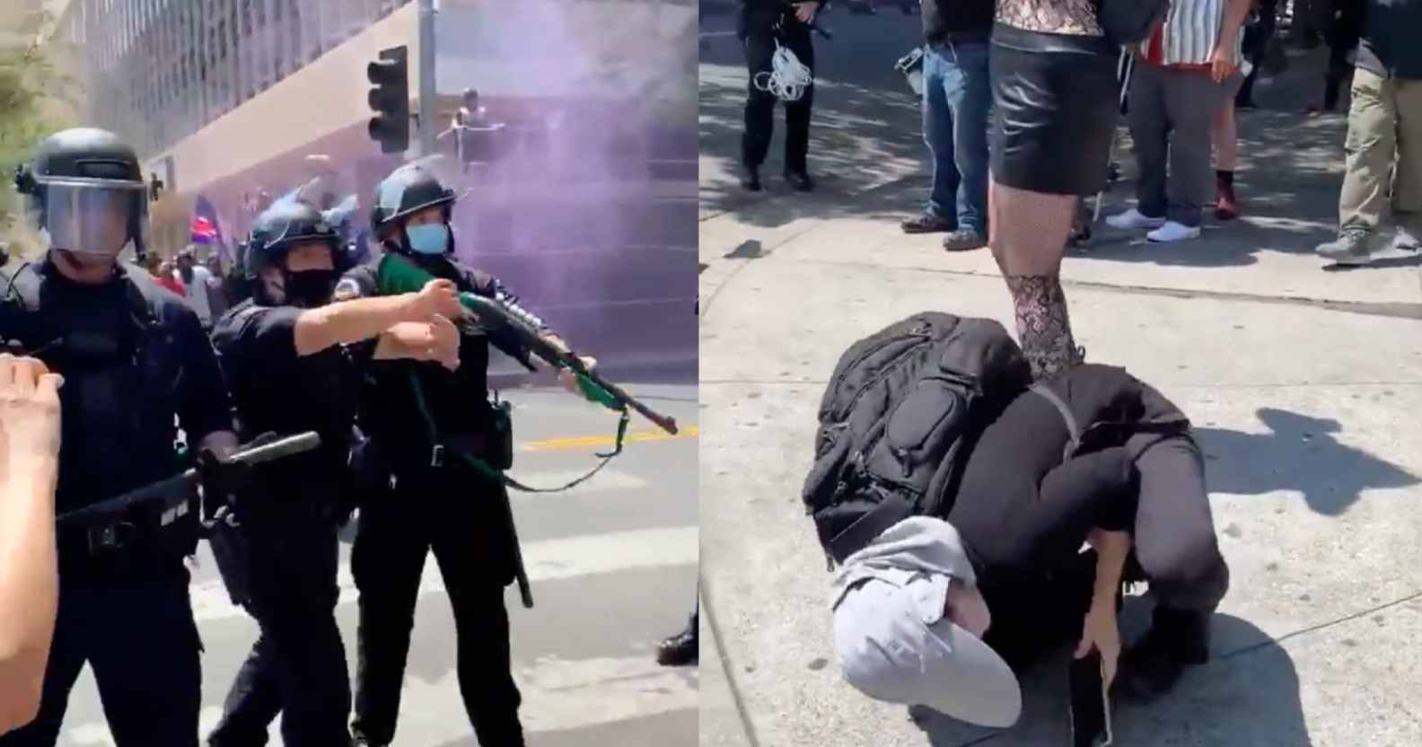 Writing about the incident on Twitter, the LAPD said two groups “clashed”, noting that “projectiles” were thrown at officers and a dispersal order was issued.