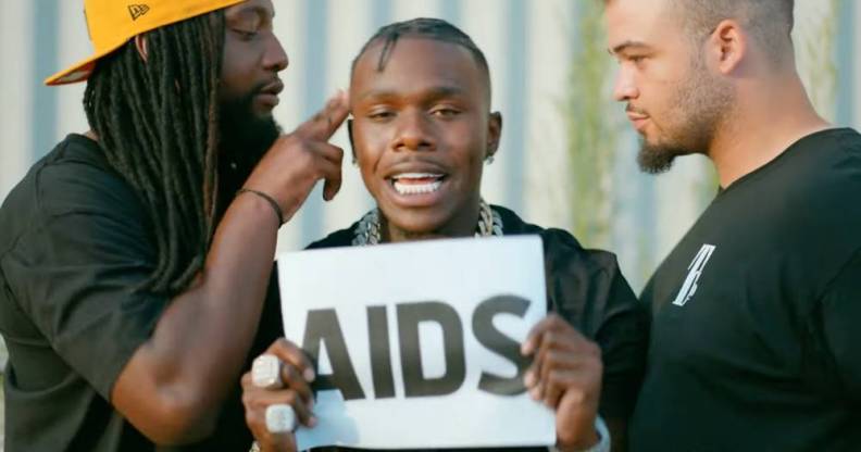 Midway through the video, the rapper holds up a sign saying “AIDS”. As the sign appears on the screen, DaBaby can be heard rapping: “B***h, we like AIDS, I’m on your a**, we won’t go away.”