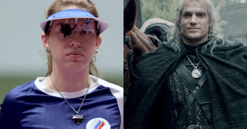 Back at the 2016 Olympic Games she wore a Witcher medallion and had some Witcher images on her shooting glasses. This year she once again wore the iconic wolf design medallion.
