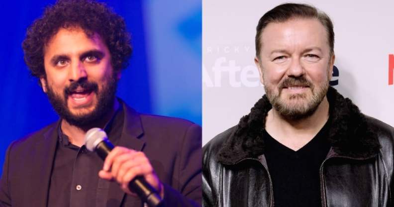 Comedians Nish Kumar and Ricky Gervais (Roberto Ricciuti/Nicholas Hunt/Getty)
