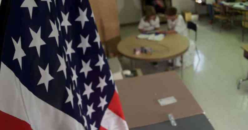 A teacher in Oregon said she has removed the American flag from her classroom because it represents “violence and menace and intolerance”. (Boris Yaro/Los Angeles Times via Getty)