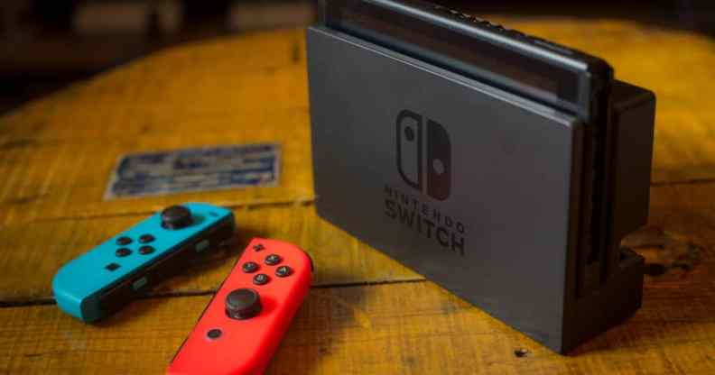The Nintendo Switch console comes in neon red and blue. (Photo Illustration by Guillaume Payen/SOPA Images/LightRocket via Getty Images)