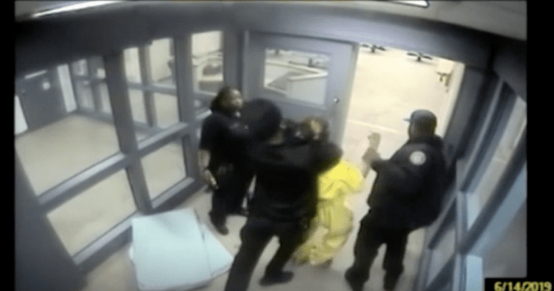 A video has been released of a trans woman, Amber Canter, being held in a brutal chokehold and dropped on her face by officers in a Baltimore corrections facility.