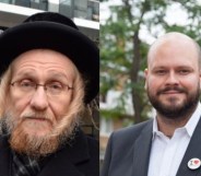 Adam Rippon (R) and Jussi-Pekka Kajaala arrive at the 30th annual GLAAD Media Awards in Beverly Hills on 28 March 2019. (Lisa O’Connor/AFP via Getty)