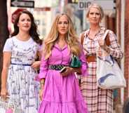 Kristin Davis, Sarah Jessica Parker and Cynthia Nixon filming And Just Like That. (Getty)