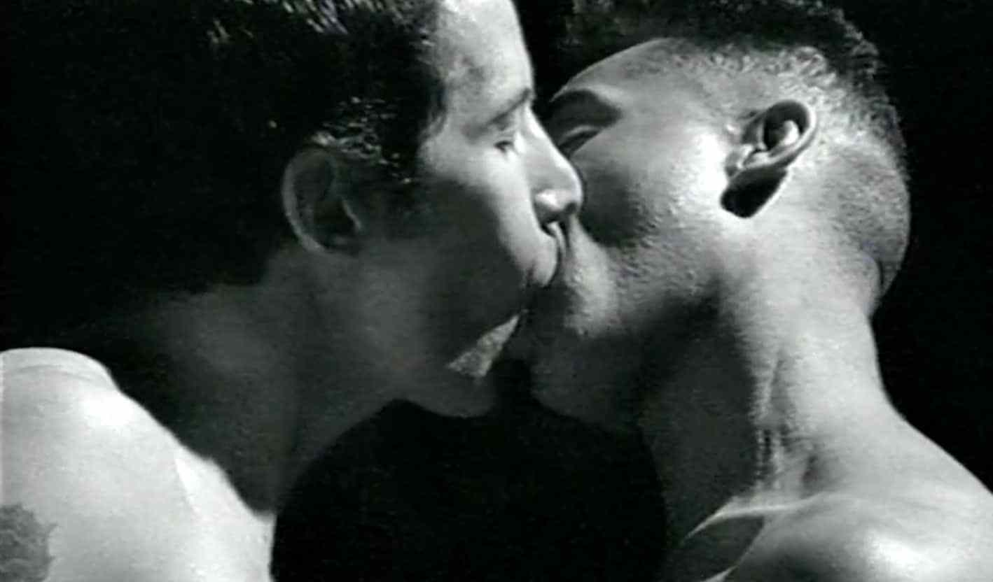 Two men kissing in a still from The Gay Men's Guide to Safer Sex. (Barbican)