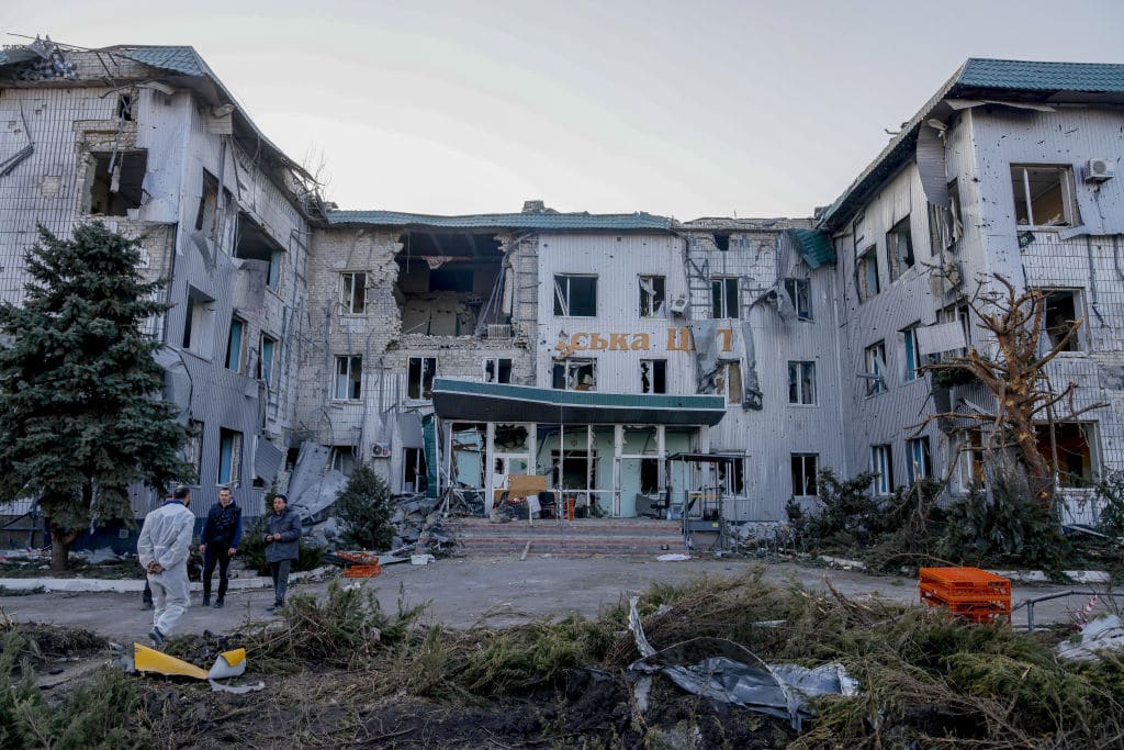 A heavily damaged hospital in Volnovakha, one of the cities most affected by the war. (Getty)