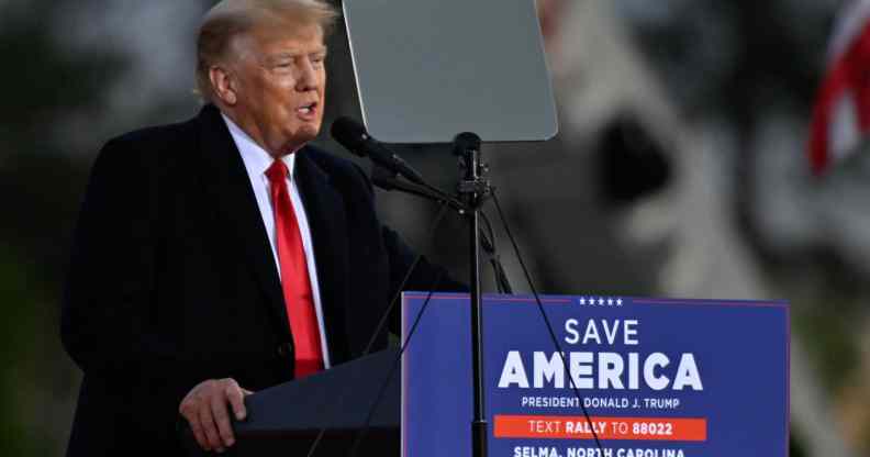 Trump, who oversaw an administration that caused LGBT+ people mental distress, added that if the GOP ever controls Congress again “we will not, by the way, have men participating in women’s sports”.