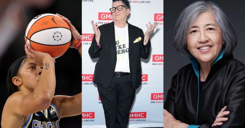 WNBA star Candace Parker (left), comedian Lea DeLaria (centre) and US ambassador Chantale Wong (right). (Getty/ Stacy Revere, Getty/ Michael Loccisano and Facebook/ Chantale Wong)