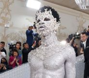 The singer, Yitty CEO and all-round icon walked the red carpet in sweeping black coat by designer Thom Browne, with intricate gold hand-embroidery, and carried a matching gold flute.
