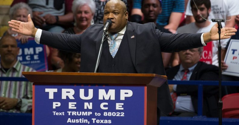 Mark Burns speaks during a Trump presidential rally in 2016 (Getty/Suzanne Cordeiro/APF)