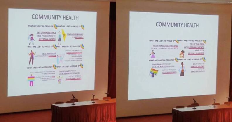One post on the Singapore sub-Reddit showed slides from the presentation, titled “Community Health”, with claims about how “58 per cent of homosexuals have problems with intestinal worms”. It also alleged a proportion of gay people have sexually transmitted diseases, sexually abuse children and are perpetrators of domestic violence.