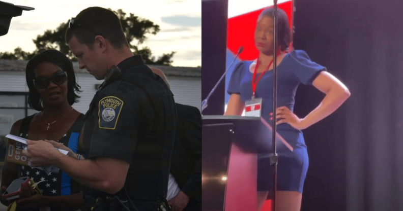 Republican candidate Rayla Campbell was reportedly referred to police after she lied that an LGBTQ+ book she was holding had “child porn” in it.