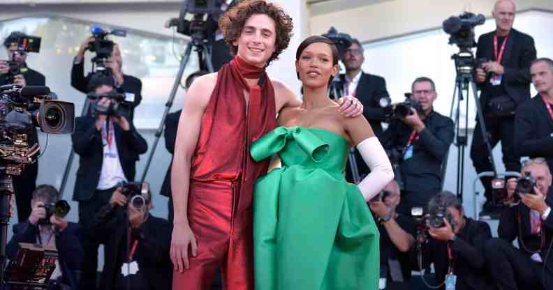 Timothee Chalamet and co-star Taylor Russell on the Bones And All red carpet in Venice. (Rocco Spaziani/Archivio Spaziani/Mondadori Portfolio via Getty Images)