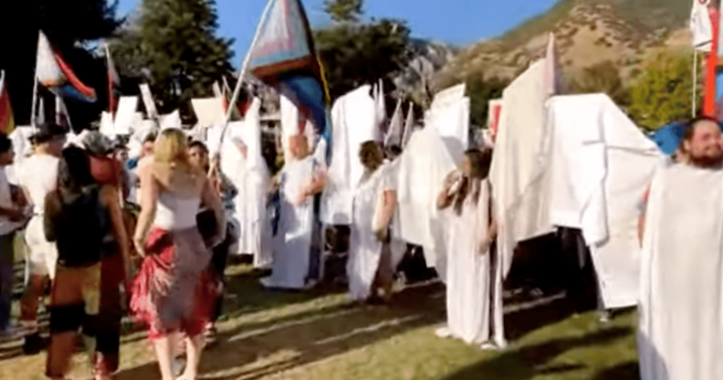 BYU students and others dressed as angels. (YouTube/Latter Gay Stories)