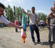 But the day before the event kicked off, thousands of protesters took to the streets carrying huge Serbian and Russian flags, chanting pro-Russia and anti-LGBTQ+ slogans and marching to Belgrade’s St Sava cathedral for prayers.
