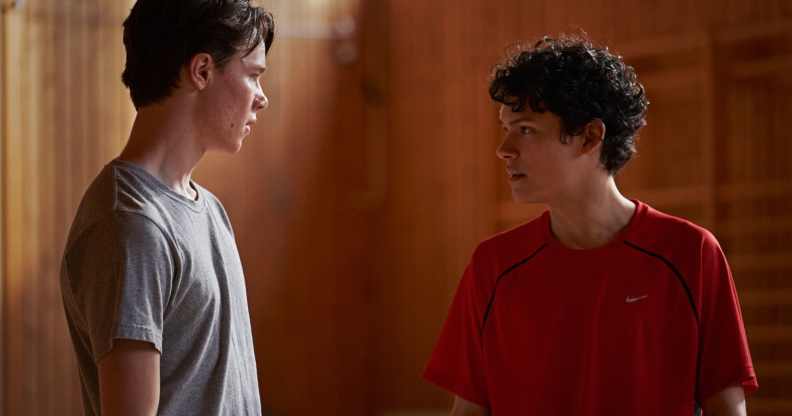 Edvin Ryding as Wilhelm and Omar Rudberg as Simon in Young Royals season two. (Robert Eldrim/Netflix)