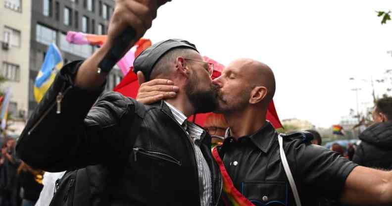 A kiss during EuroPride in Belgrade, Serbia. (Getty)