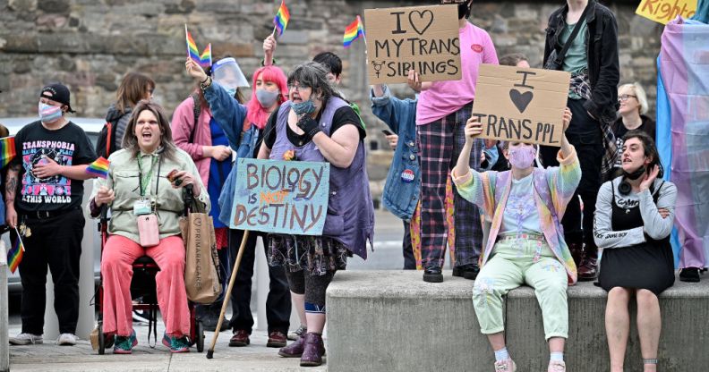 Trans rights activists hold a demonstration in September in Edinburgh. (Jeff J Mitchell/Getty)