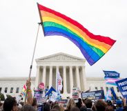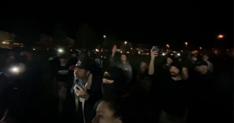 It was met by LGBTQ+ counterprotesters who arrived waving rainbow flags and voicing messages of trans solidarity.