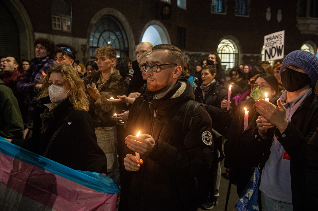 Neil Hudson-Basing, who attended the vigil in London, told PinkNews he went along to “show solidarity with my trans+ siblings” and to be counted as someone who “stands against the current treatment of trans, non-binary and gender non-confirming in the UK and worldwide”.