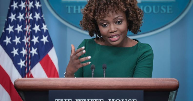 Karine Jean-Pierre concluded by reiterating that president Joe Biden has been “very clear when it comes to vulnerable communities, like the LGBTQ community, that he has their backs”.
