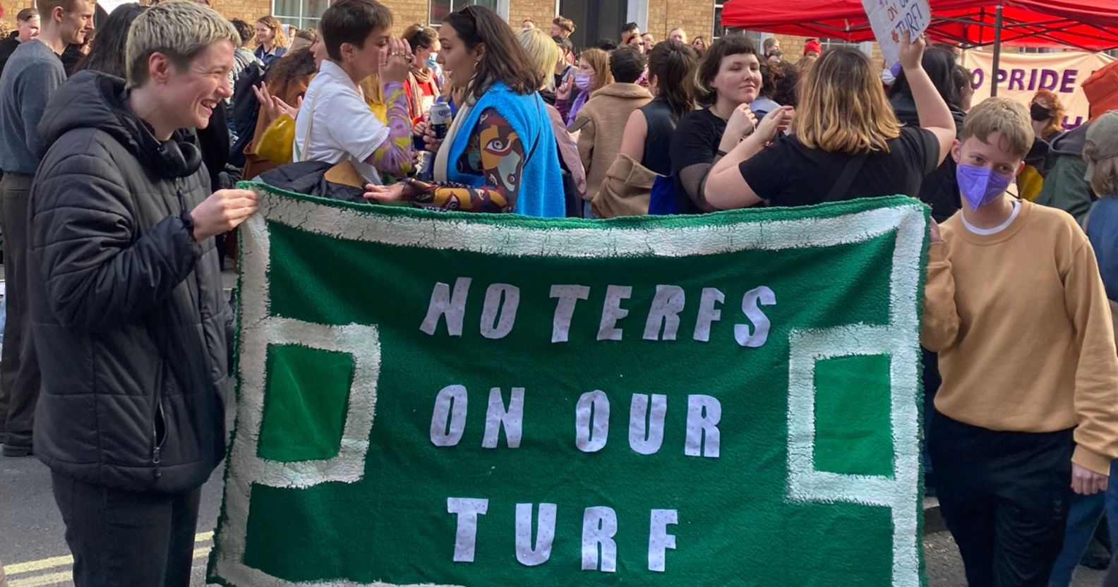 Pro-trans activists rallied for a party outside of The Lesbian project meeting point. (Twitter)