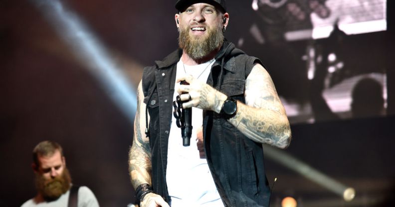 Country singer Brantley Gilbert smashed a can of Bud Light at a recent show, seemingly in protest against the beer company’s partnership with Dylan Mulvaney (Photo by Tim Mosenfelder/Getty Images)