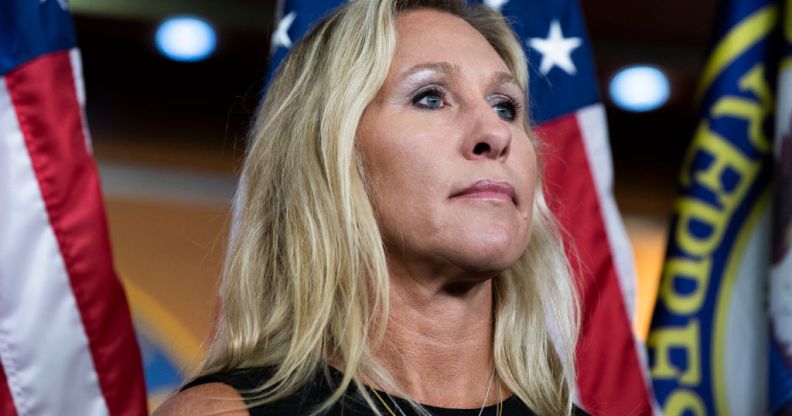 In a now-deleted podcast, Republican politician Marjorie Taylor Greene called trans influencer Dylan Mulvaney a pedophile (Photo By Tom Williams/CQ-Roll Call, Inc via Getty Images)