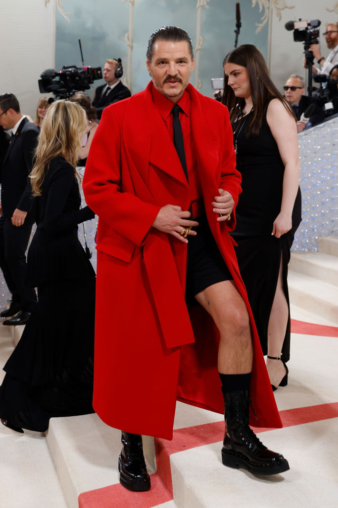 Daddy, trans ally and king of the internet Pedro Pascal arrived in a bright red coat, some “slutty little shorts” and leather boots. And he ate.