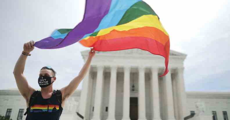 A Pride flag flies outside the US Supreme Court. (Getty/ Chip Somodevilla)