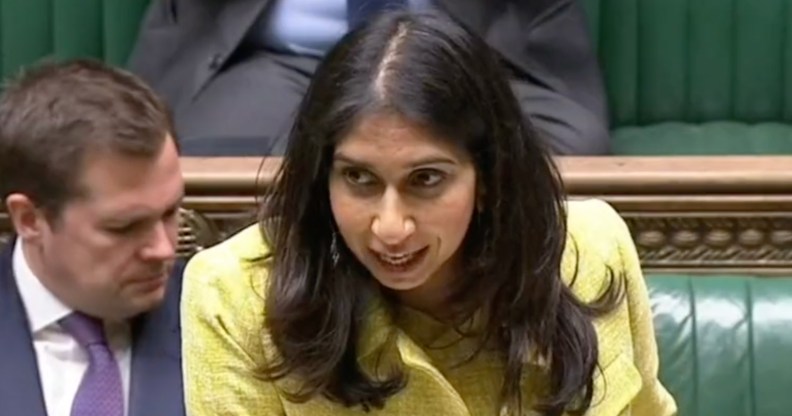 Suella Braverman is set to make some dangerous anti-LGBTQ+ claims in an upcoming speech about international migration laws. (Credit: House of Commons)
