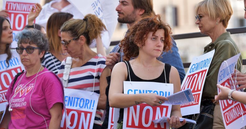 The protest comes amid lesbian mums telling PinkNews they are living in “fear” over the actions of Italy’s prime minister Giorgia Meloni, leader of the far-right Brothers of Italy party, who introduced the new rule.