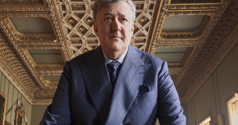In recent years, Fry has had cameos in several LGBTQ+ favourite TV shows and films, including Heartstopper, Sex Education and The Sandman. He’ll also be voicing a character in the upcoming animated version of gay playwright Oscar Wilde’s The Canterville Ghost, alongside his old comedy buddy Hugh Laurie and Freddie Highmore, who played openly gay cook and food journalist Nigel Slater in 2010’s Toast.