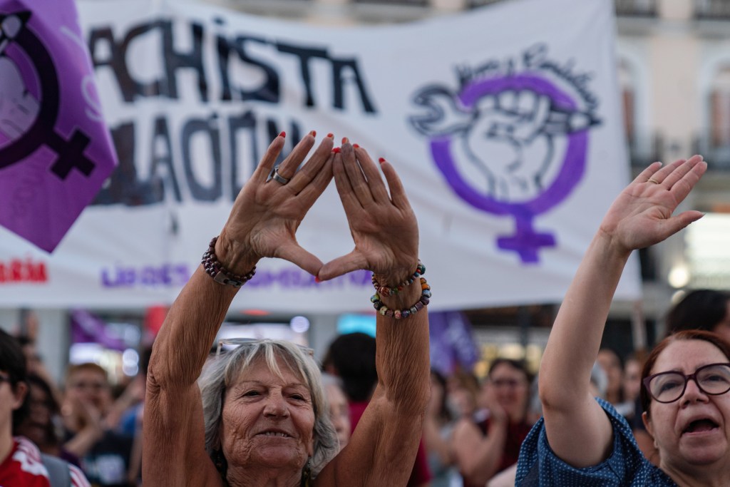 Large numbers of the protesters wore the colour purple and held banners and signs, as well as red cards, which read in Spanish “Rubiales out of play” and “do not manipulate feminism”.