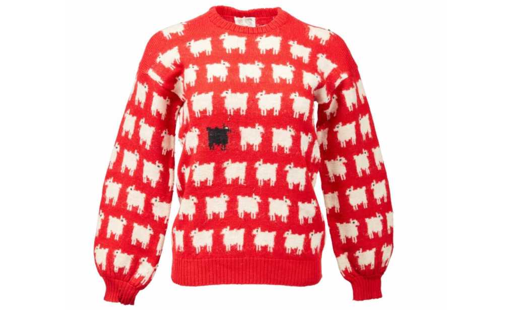 The red jumper features one black sheep amongst a flock of white ones. (Tim Graham Photo Library via Getty Images)