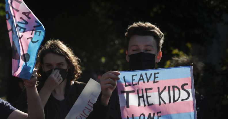 Protesters argue that parents should be told whether their child is socially transitioning or going by a different gender identity at school, under the guise of “parental rights”.