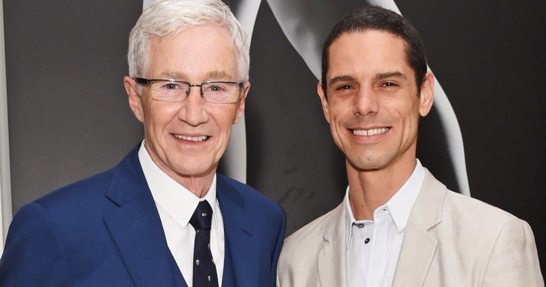 Paul O’Grady (L) with husband Andre Portasio (R). (Getty)