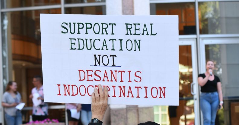 DeSantis claimed the legislation ensures “parents can send their kids to school to get an education, not an indoctrination” but since it was enacted the bill has been used to push right-wing policies and ban books and classic works of literature, high school and university courses and investigate teachers for even showing films which just feature a gay character.