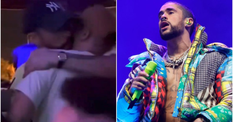 A blurry clip claimed to show Bad Bunny kissing another man at a gay bar. It wasn't a gay bar, and the man was his brother (@LyricVault/Getty)