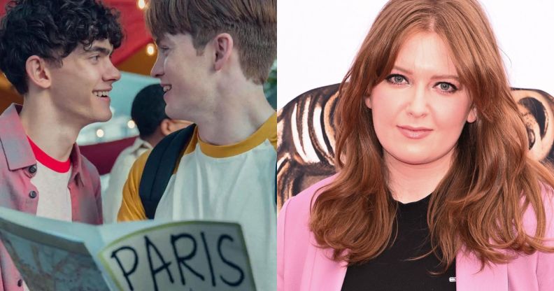 Heartstopper author Alice Oseman (R). (Netflix/Getty)