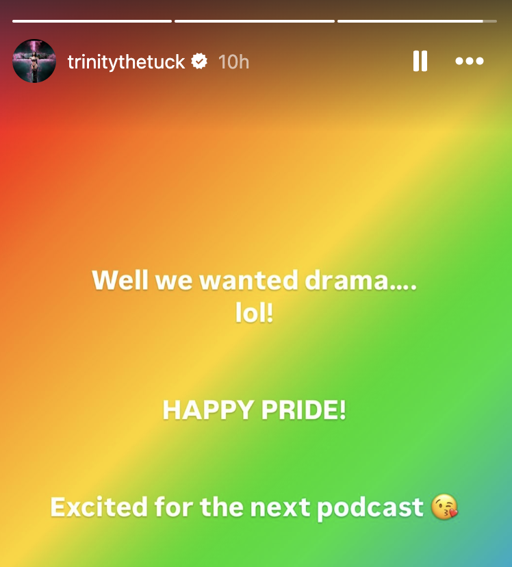 The posts continued, with Farrah vaguely claiming that Trinity made another transphobic remark “on Twitter or online”, but clarifying that her “breaking point was in 2020 when [Trinity had] freshly won an All Stars season, were in a deadly pandemic, and she tweets about how essential her job is.”