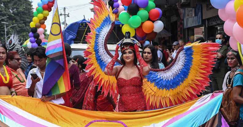 Hundreds of people have gathered together for Nepal Pride parade. (Prakash Mathema/AFP/Getty Images)