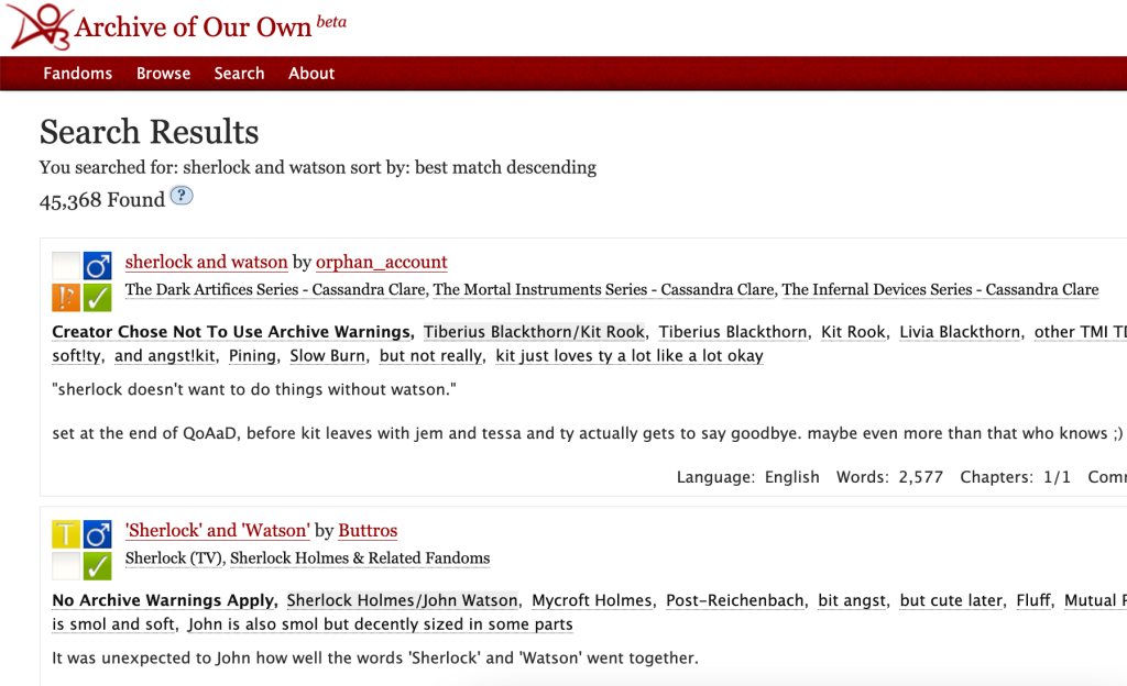 Once again, fan fiction serves to change the ending. People who ‘ship’ Sherlock and Watson and want them to end up together can get that satisfaction by writing their own fan fiction or reading fan fiction written by others who are like-minded and agree with their opinions.