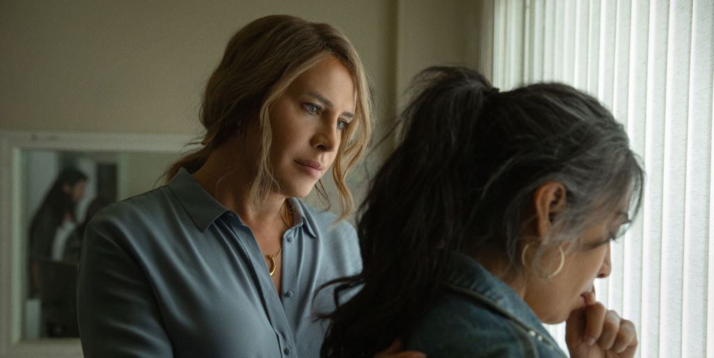 Paz is only in a few scenes, and almost all of them are with Gascón. They meet at Emilia’s guilt-inspired charity venture. Epifanía’s violent husband is dead and Emilia is a protective presence.