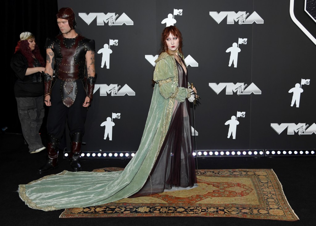 The singer jumped straight out of a Renaissance painting for her VMAs red carpet look, adding that she was “triggered” by the obvious events of the evening.