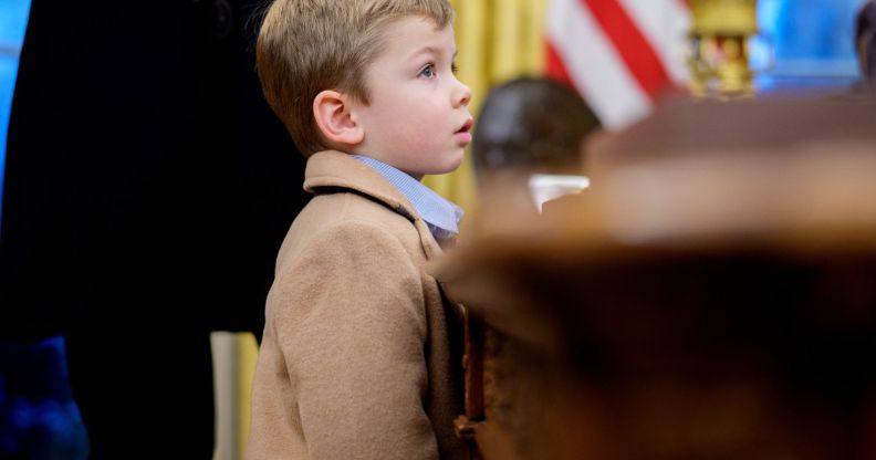 The youngster was also seen mimicking his father’s gestures and picking his nose before wiping his hand on the Resolute desk – a gift from Queen Victoria to president Rutherford Hayes in the 1880s.